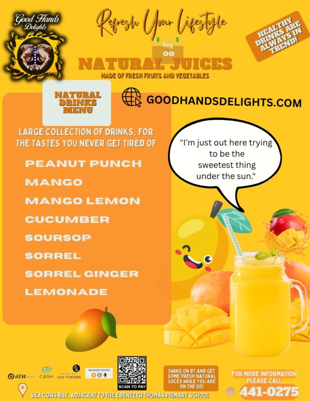 Good Hands Delights is open today from 1:30 PM to 6:00 PM! 🕒✨ 🥭 Mango is the highlight drink of the week… and honestly, it might just steal the spotlight for the rest of the summer! “Mango is just out here trying to be the sweetest thing under the sun.” 🥭☀️ Come beat the heat with a sip of sunshine — your summer isn’t complete without a little mango magic. 🌞🍹 “When life gets juicy, be like a mango — sweet, golden, and full of sunshine.” ✨